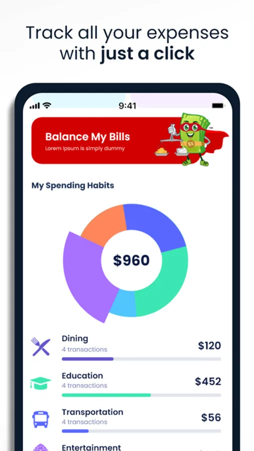 The $5 Bill Helper™ app uses the Bill Balancer™ to split bills and