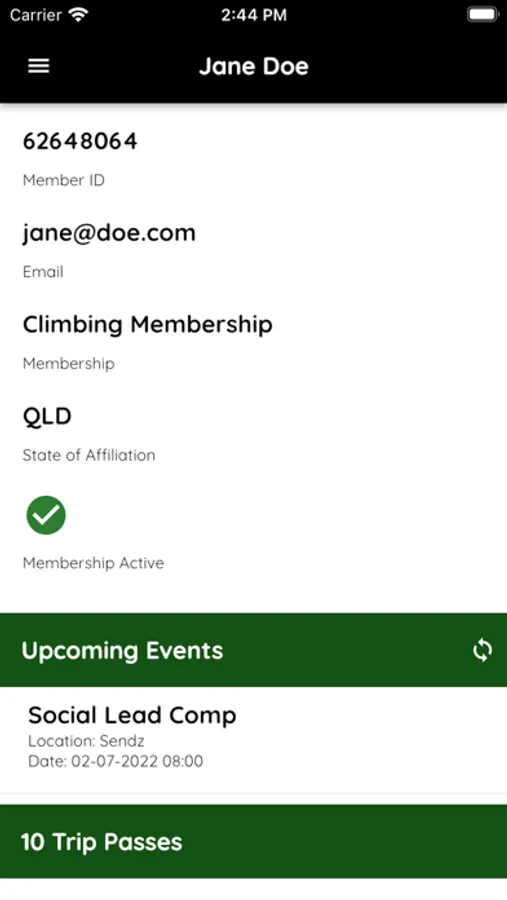 The Sport Climbing Australia app allows members to view information about their member profile, see details of up-coming and registered events, and use their 10 trip passes at participating facilities across Queensland.