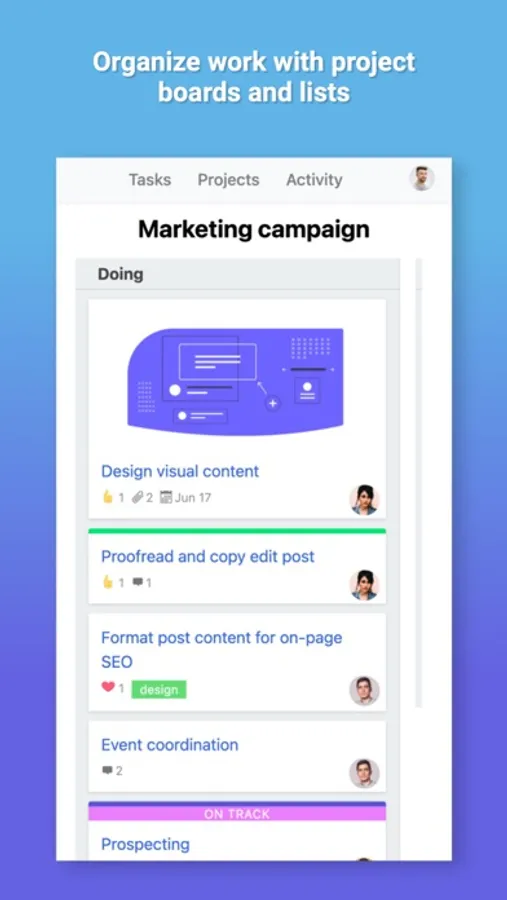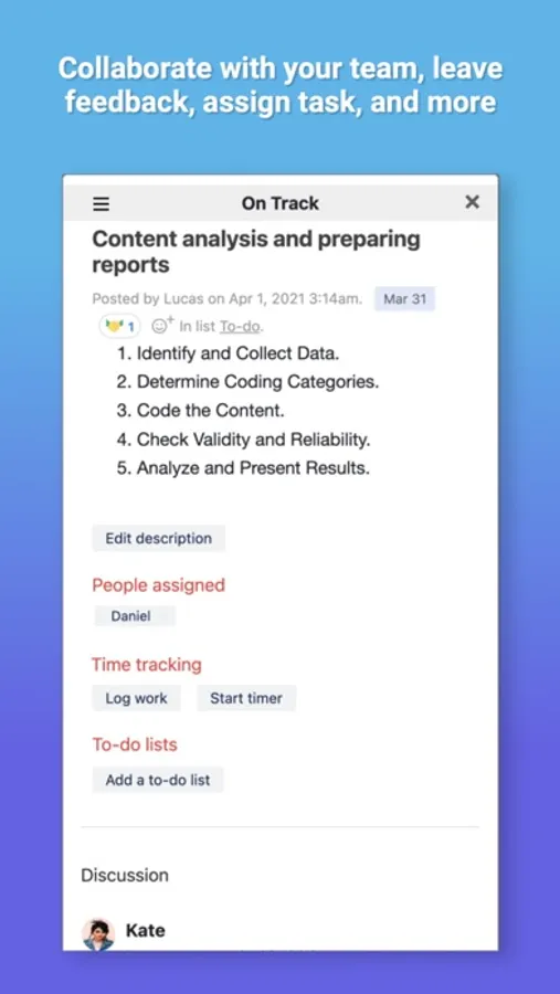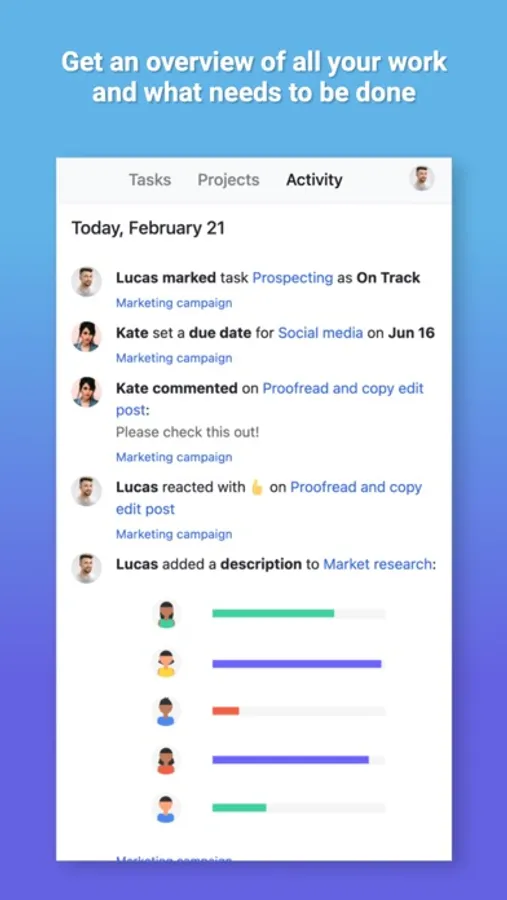Collaborate anytime, anywhere with your teammates Like, comment, share files to keep on top of work.