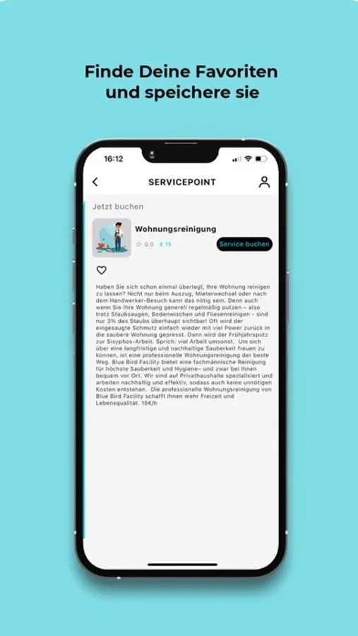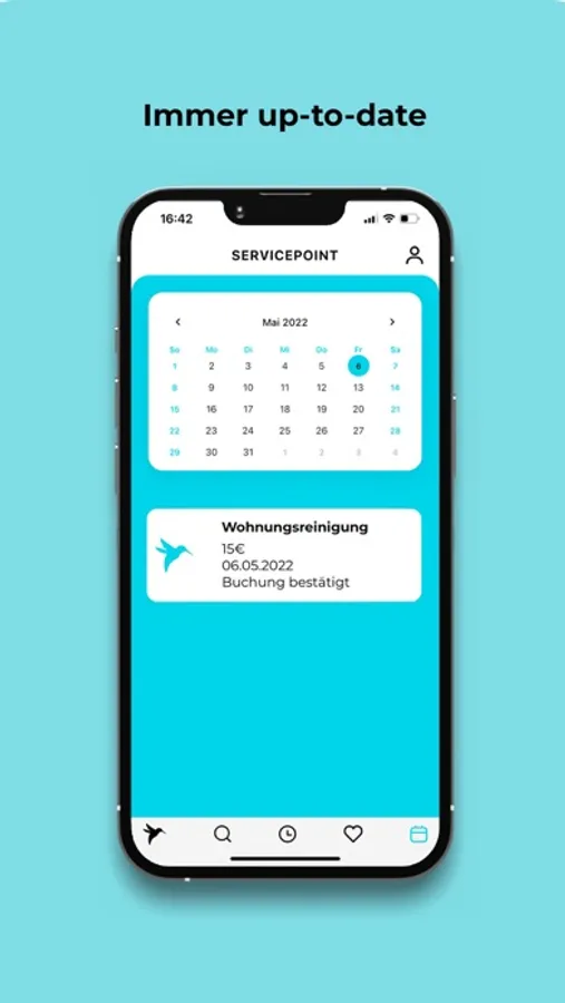 Die Kalenderfunktion ermöglicht Dir eine übersichtliche Ansicht der gebuchten Services, die Favoritenfunktion ermöglicht es Dir favorisierte Services schnell und bequem zu finden.