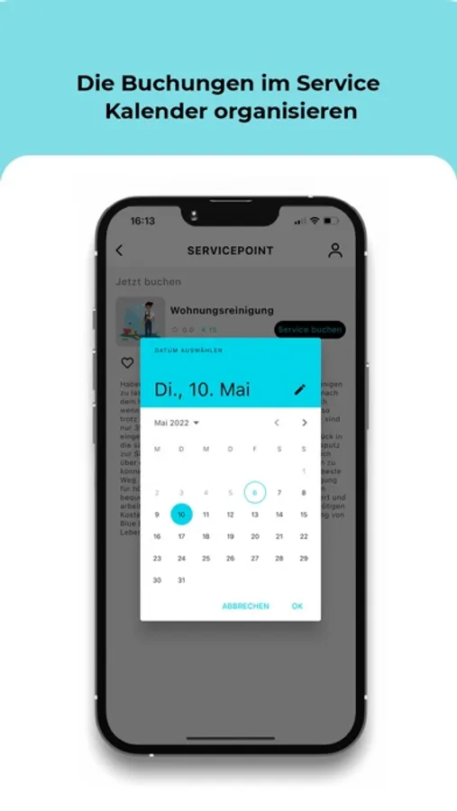 Du kannst mit der App Dienstleistungen, Services, Events des Alltags und darüber hinaus buchen.
