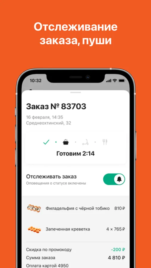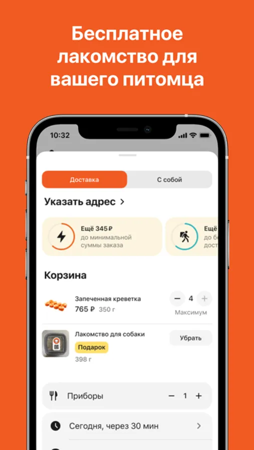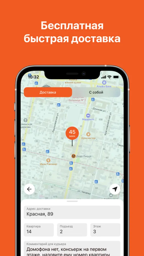 Приложение определяет адрес, показывает время доставки и предлагает только доступные позиции. Сделайте заказ за пару минут, привезем быстро и бесплатно.