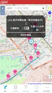 (1)バスマップ機能:車両の現在地、遅れ状況を確認できます。