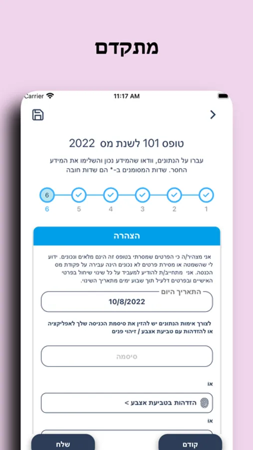 בכל מסך נפתחת בפניך האפשרות לשנות את השדות שמאופשרים לשינוי, תוך מתן אפשרות קבלת עזרה על השדות הרלוונטיים, והאפליקלציה מתריאה במידה ודיווח הנתונים בטופס אינו בהתאם לחוקי המס של מדינת ישראל.