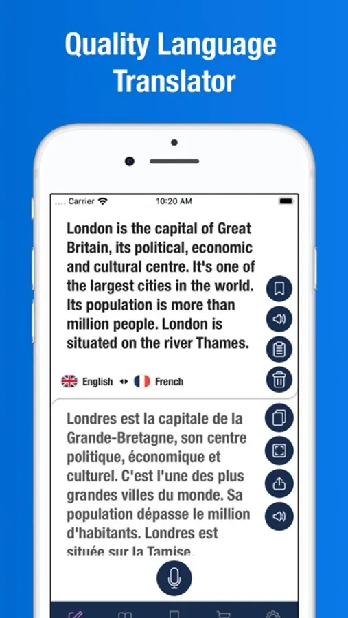 • Voice-to-Text – Speak and get the translation as text.