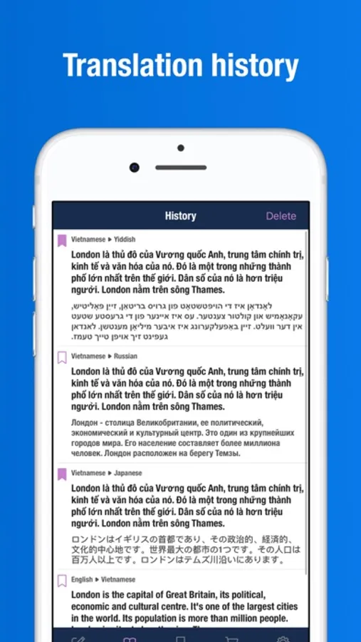 Quality useful application that helps to translate words from/to any language. Perfect for school children, teachers, students, adults, travellers and for anyone who is interested in studying foreign languages.