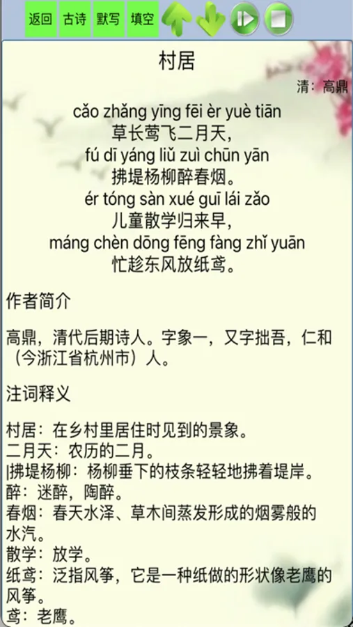 1.所有古诗文均有翻译,词语注解,背景简介,朗读。
