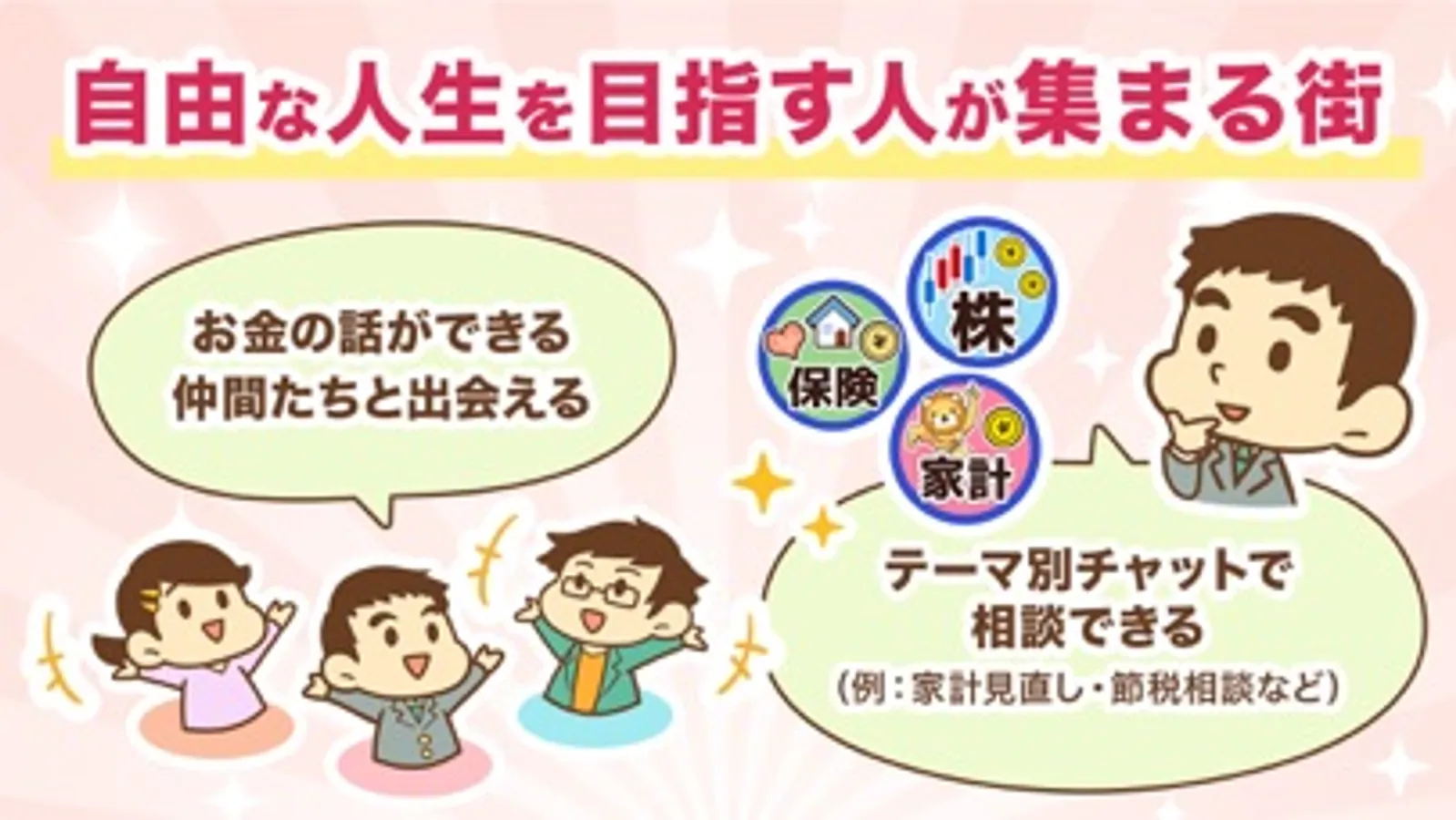 ・テーマ別チャットで投資相談。年利5%超が期待できる運用法を実践する(インデックス投資、高配当株投資、不動産投資など。各種投資の専門家・インフルエンサーが在籍)
