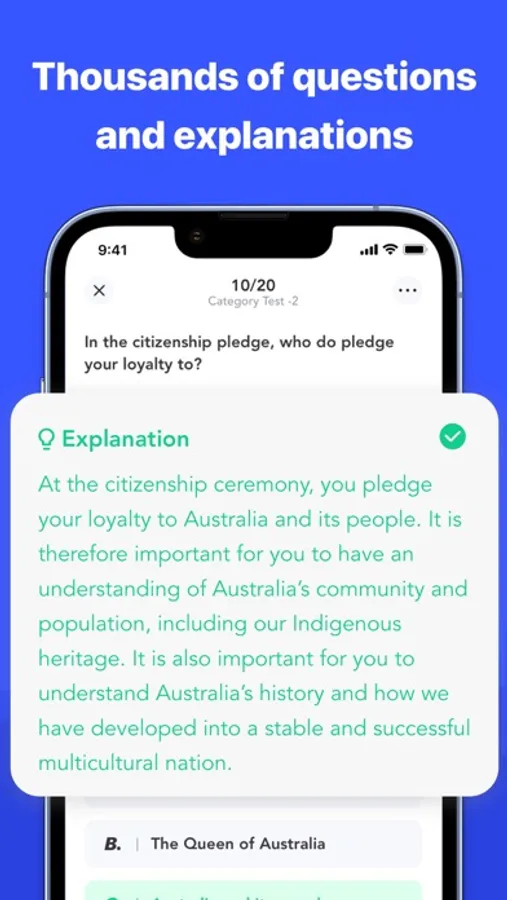 Congratulations! As long as you successfully pass theCitizenship test au 2023 perp. We are committed to developing the Citizenship test au 2023 App to help you prepare and review, so that you can easily pass the test. Citizenship test au Test app is for general information use only. Nothing in this application is intended to provide legal advice or to be binding in any dispute, claim, suit, demand or proceeding.