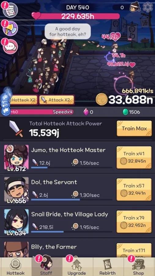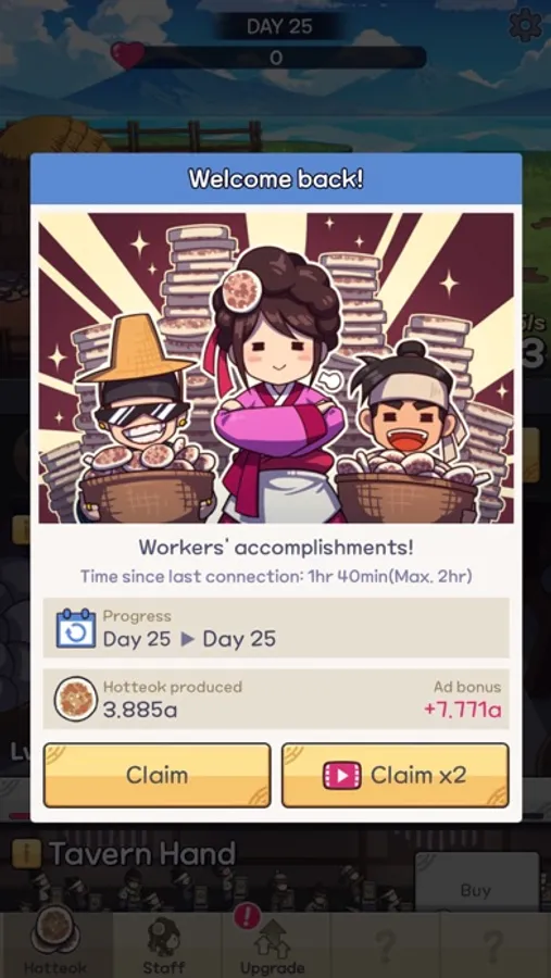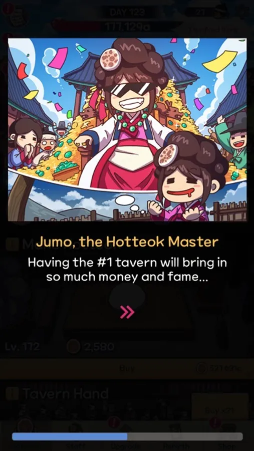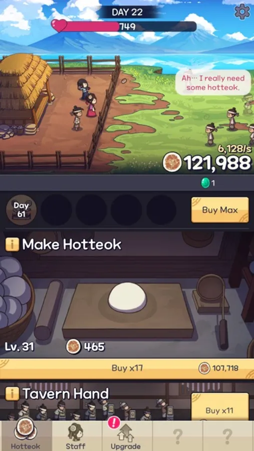 Start by making some hotteok, serving your hungry customers, and then building your tavern!
