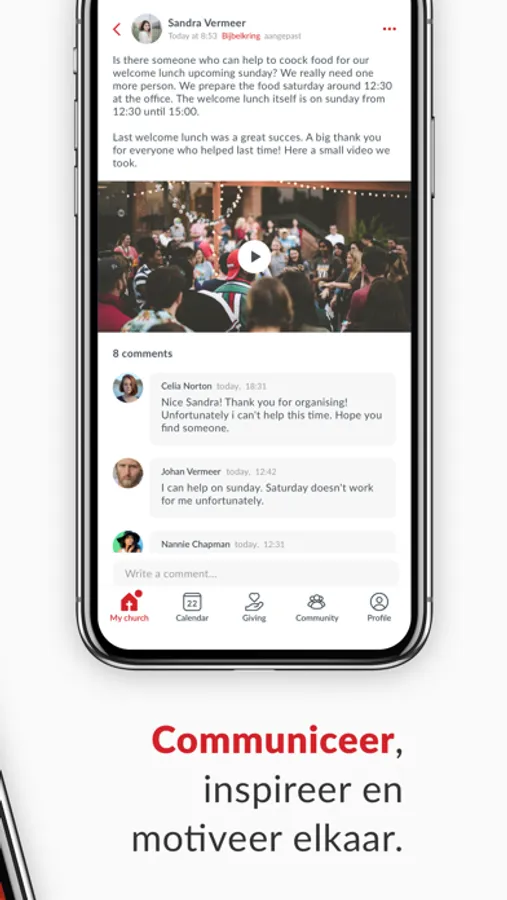 Thanks to our unique group structure, we can communicate better. With the entire community, but also among ourselves. You can add groups yourself and invite people to join. A smart timeline ensures that you see personal and relevant information.