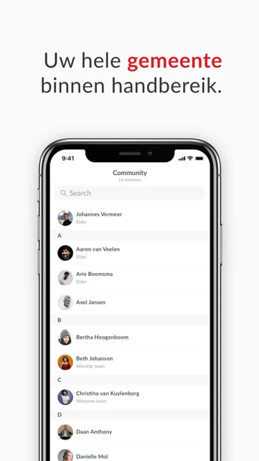 Does anyone still look up a telephone number in the telephone book? Hardly anyone! Thanks to the community guide feature, everyone within your congregation can be found. Send messages quickly, navigate to an address, or see what someone's role is in the Church? It becomes easy with the digital community guide.