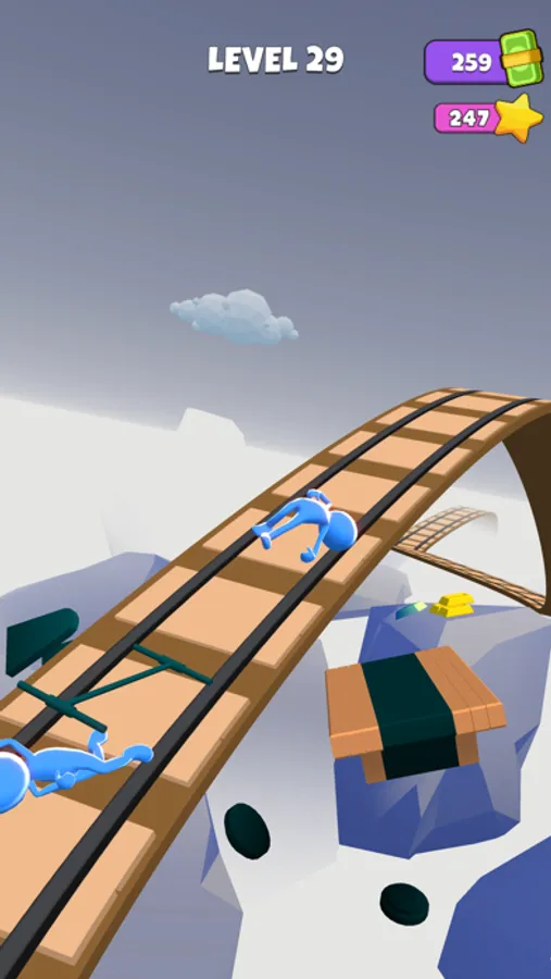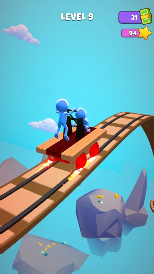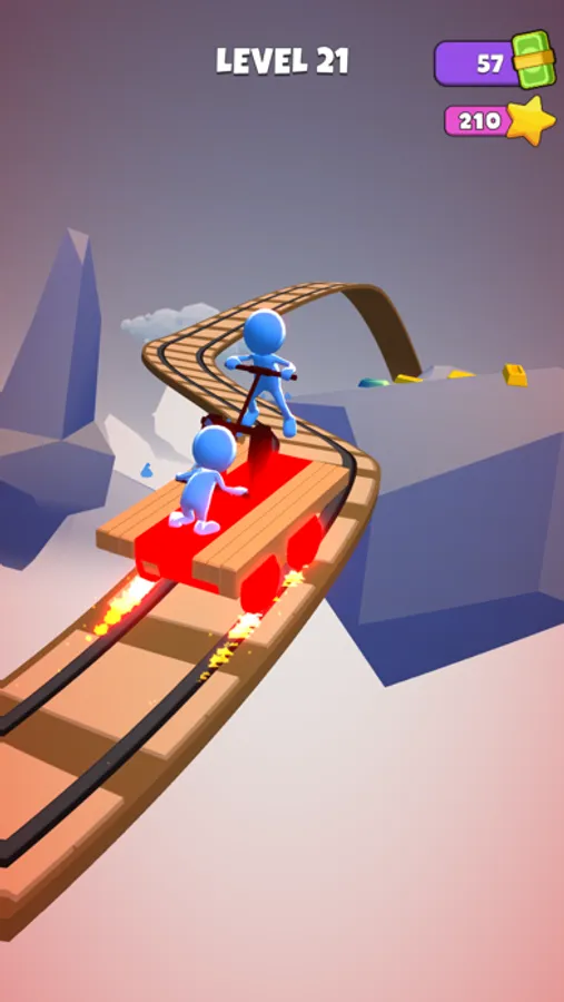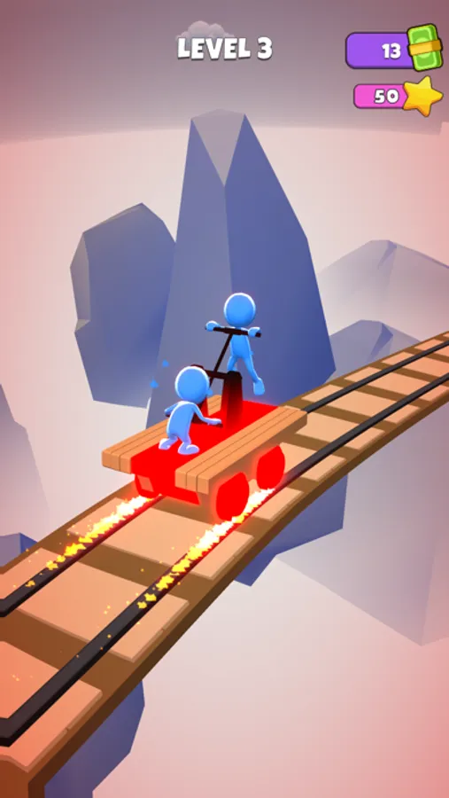 There is a railway that goes to an unknown place! Ride the cart without pushing over! Remember it is both a time and strength challenge!