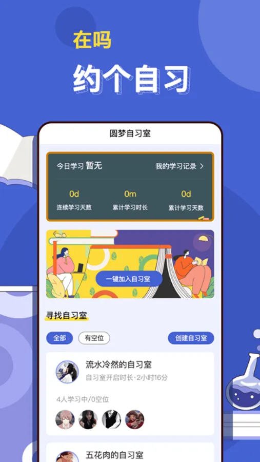有学有聊帮你,在线自习 - 和同学一起学习不会枯燥,自由选择 - 选择自己喜欢的教室自习,每日统计 - 自习数据均记录并有统计,你敢兴趣的都在这。
