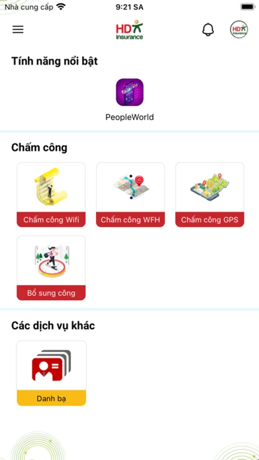 Ứng dụng People HDI là một ứng dụng dành cho mọi đối tượng người sử dụng với rất nhiều tiện ích, tính năng nổi bật. Giao diện được thiết kế thân thiện với người dùng theo logo, chủ đề, màu sắc mang ý nghĩa đặc trưng, riêng biệt đồng thời là sứ mệnh tầm nhìn chiến lược của HDI. Mục đích hơn thế nữa, là để hướng đến mọi đối tượng khách hàng và đem lại những trải nghiệm tốt nhất khi sử dụng App.