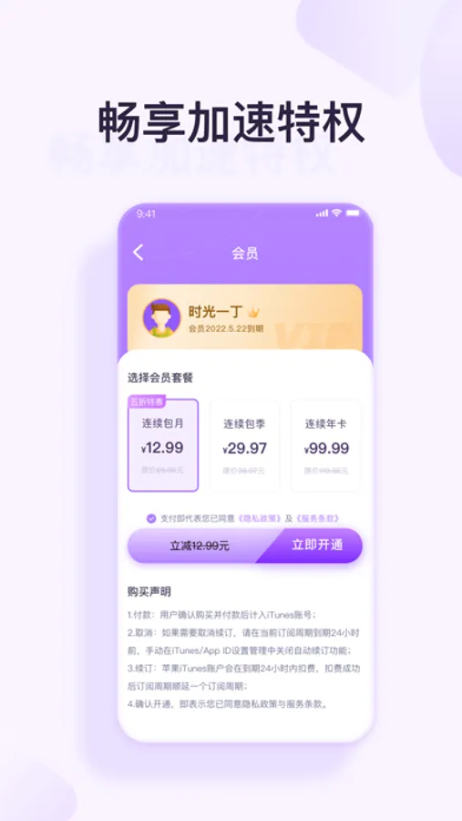 — 续订:苹果iTunes账户会在到期前24小时内扣费,扣费成功后订阅周期顺延一个订阅周期。