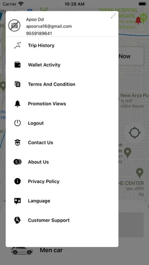 2. The app will list all nearby service drivers based on popularity or proximity,