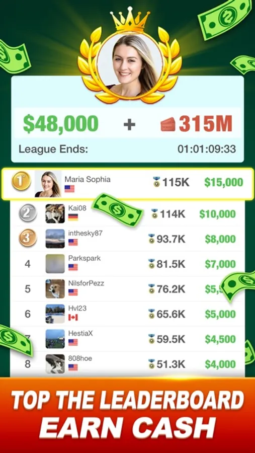 • Compete in multiplayer cash tournaments, beat the competitors to be No.1 and win HUGE CASH PRIZES