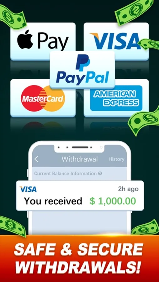 • 100% safe and secure withdrawal via PayPal & Apple Pay