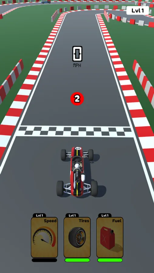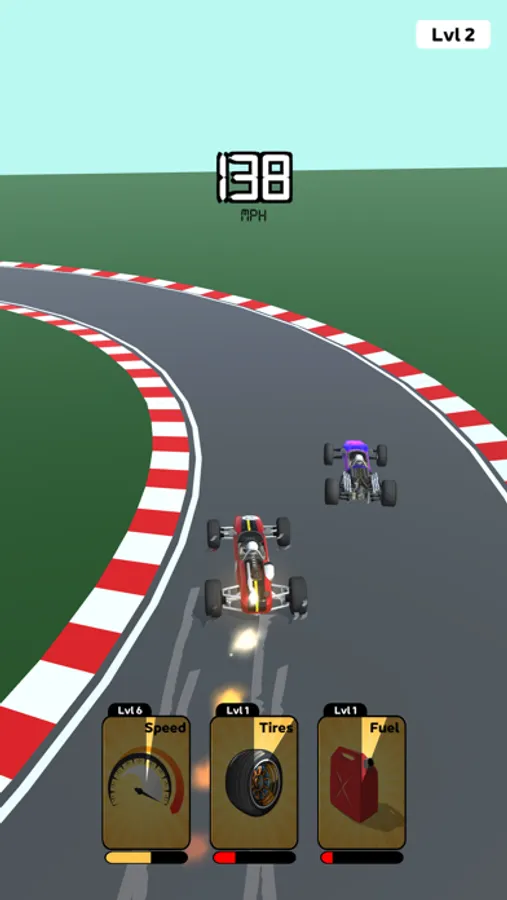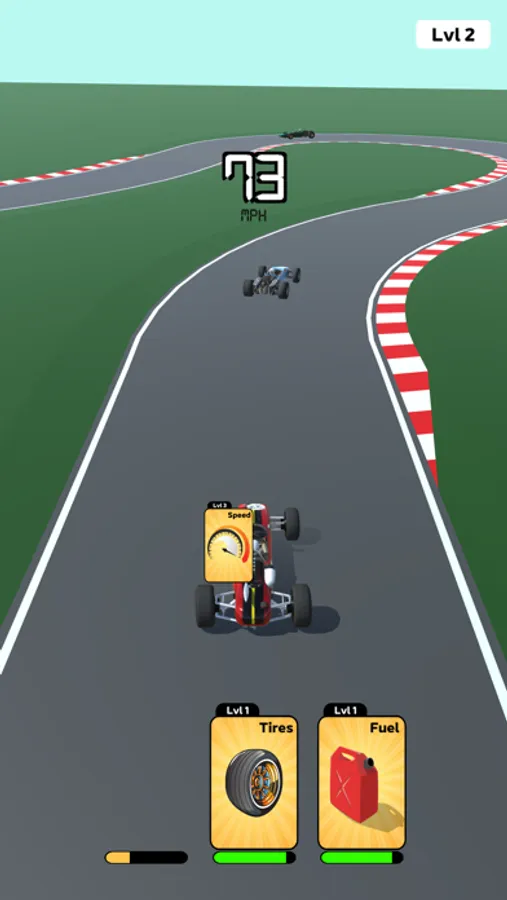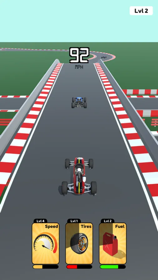 Upgrade your car's speed, tires and fuel with your cards. Win this race.