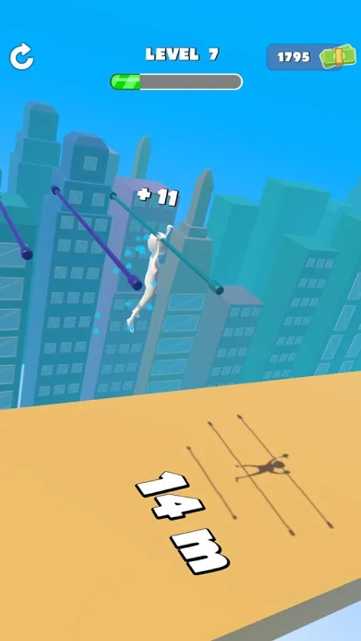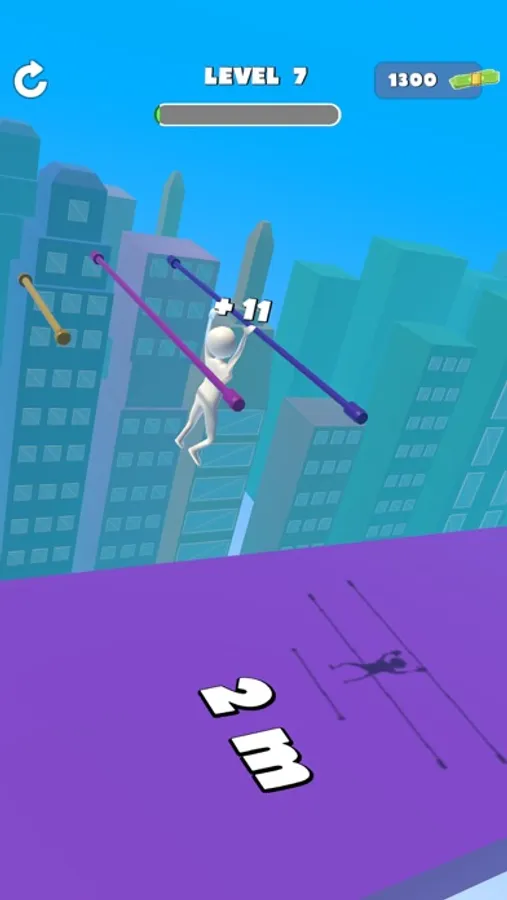 You have to reach the end by swinging on the bars, don't forget to take a break and rest!