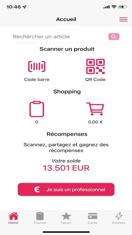Scanner, partager et gagner de l'argent avec Zounko. Scanner les codes barre et les QR Code avec Zounko. Obtenez le nutriscore et le code NOVA des produits scannés. Zounko est un moteur de recherche de promos et de bonnes affaires dans les magasins. Avec Zounko vous ferez des économies au quotidien. Retrouvez les super promos à proximité de votre domicile. Avec Zounko vous pouvez scanner les codes barre et les QR Code. Avec Zounko vous préparez votre liste de courses. A chaque fois que vous scannez un produit, Zounko vous montre son nutriscore et son code NOVA pour vous aider à faire le bon choix. Mettez vos produits favoris de côté et recevez gratuitement des alertes promo. Avec Zounko vous avez un panier qui vous affiche le total de vos achats avant d'arriver à la caisse. Avec Zounko vous partagez les super promos avec la communauté et vos proches. Vous pouvez enregistrer toutes vos cartes de fidélité dans Zounko. Enregistrez tous vos produits favoris dans Zounko. Si vous êtes un professionnel, vous pouvez utiliser Zounko pour inciter vos clients à visiter vos magasins. Sur Zounko, les utilisateurs actifs sont rémunérés par des récompenses. Scannez, partagez et gagnez des récompenses avec Zounko.