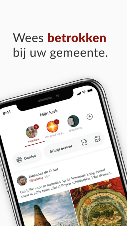 Dankzij onze unieke groepenstructuur helpen wij kerken beter te communiceren. Met de hele gemeenschap, maar ook onderling. U kunt zelf groepen toevoegen en mensen daarvoor uitnodigen. Een slimme timeline zorgt er voor dat iedere gebruiker persoonlijke en relevante informatie ziet.