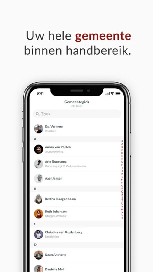 Wie zoekt er tegenwoordig nog een telefoonnummer op in het telefoonboek? Vrijwel niemand! Dankzij de gemeentegids feature is iedereen binnen uw kerkelijke gemeente terug te vinden. Snel berichten sturen, naar een adres navigeren of zien wat iemands rol in de kerk is? Met de digitale gemeentegids wordt het makkelijk.