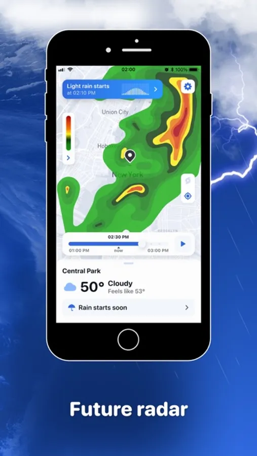Get extremely precise rain forecasts, check the future radar and plan your daily activities accordingly.