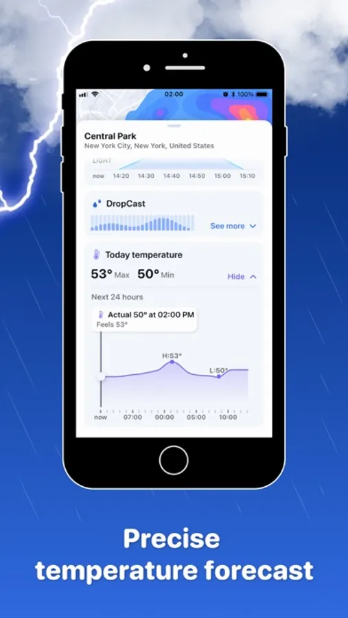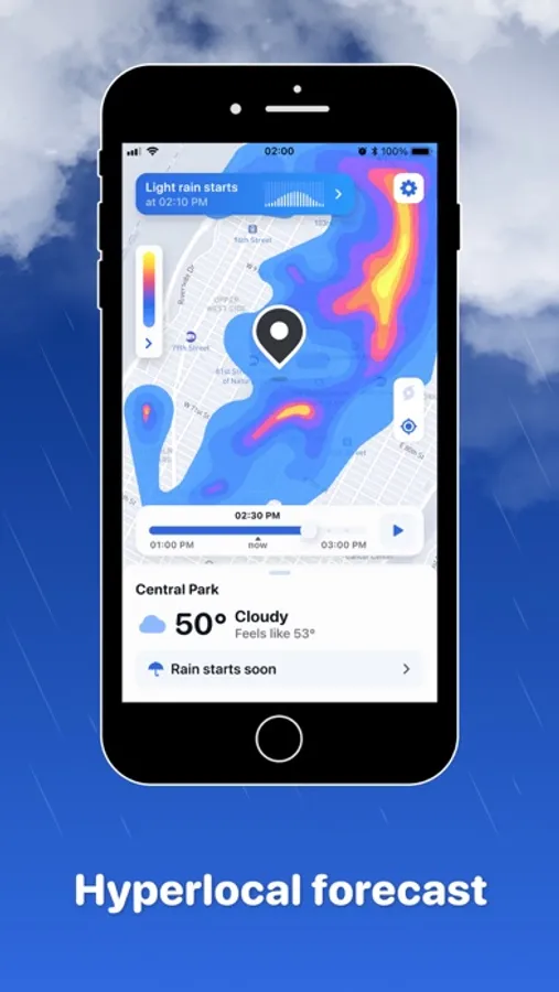 - Extremely precise rain & snow forecast for the next 1 hour.