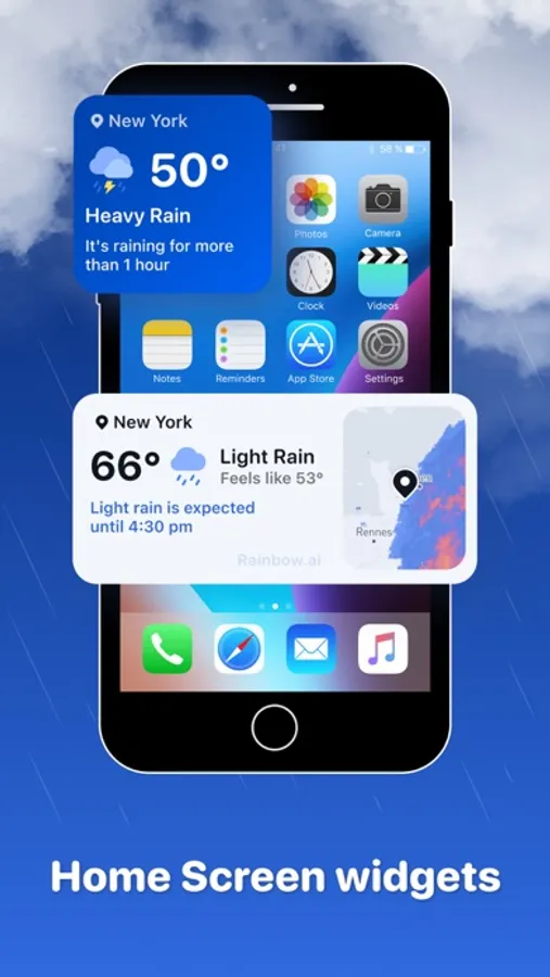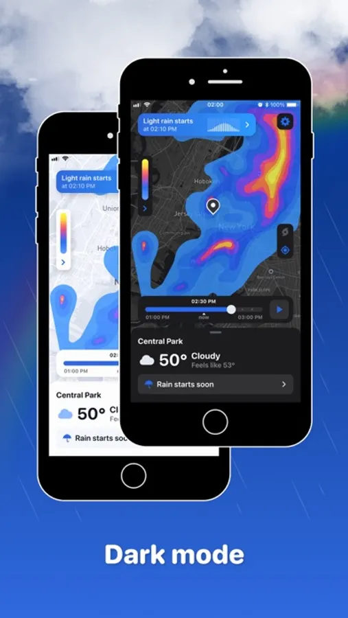 The app will alert you about upcoming rainfalls: from a little rain to a downpour so that you can adjust your plans in time.