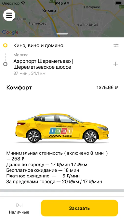 Короткий бесплатный номер для заказа такси 1331