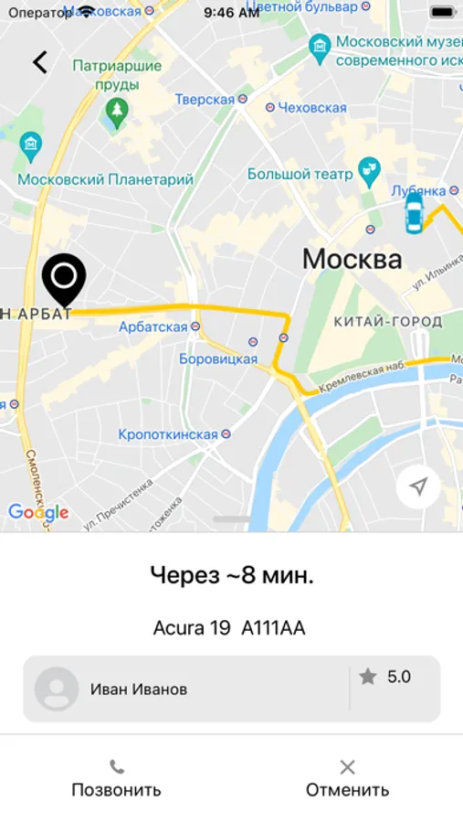 Свободные водители отображаются на карте.