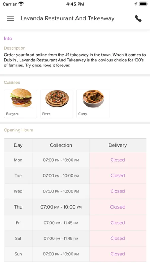 Order food online from Lavanda Restaurant And Takeaway It's so easy to use, fast and convenient. Try our new, online app which contains our entire takeaway menu. The Lavanda Restaurant And Takeaway is located in Stoneybatter . You can now order online, all your favorite dishes and many more delicious options, and have them delivered straight to your door in no time at all.