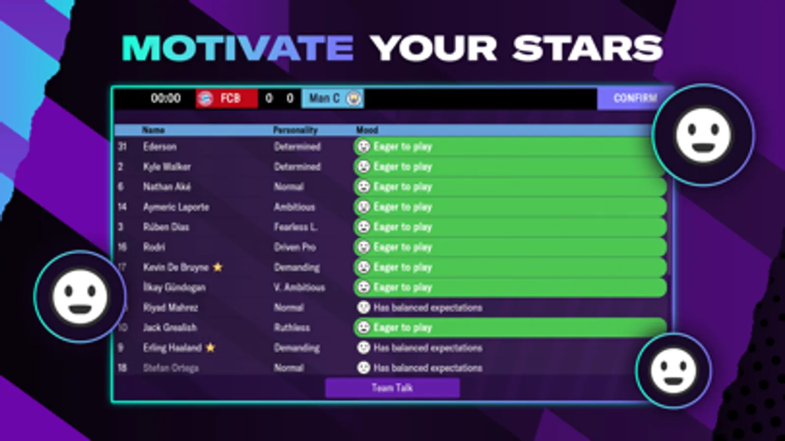 Build a squad full of superstars, develop your wonderkids into world-beaters and use Team Talks to inspire your players into action.