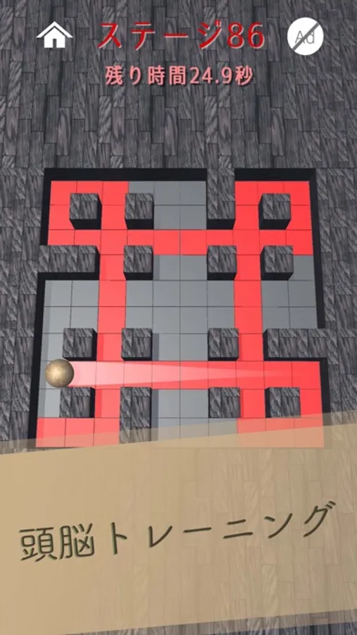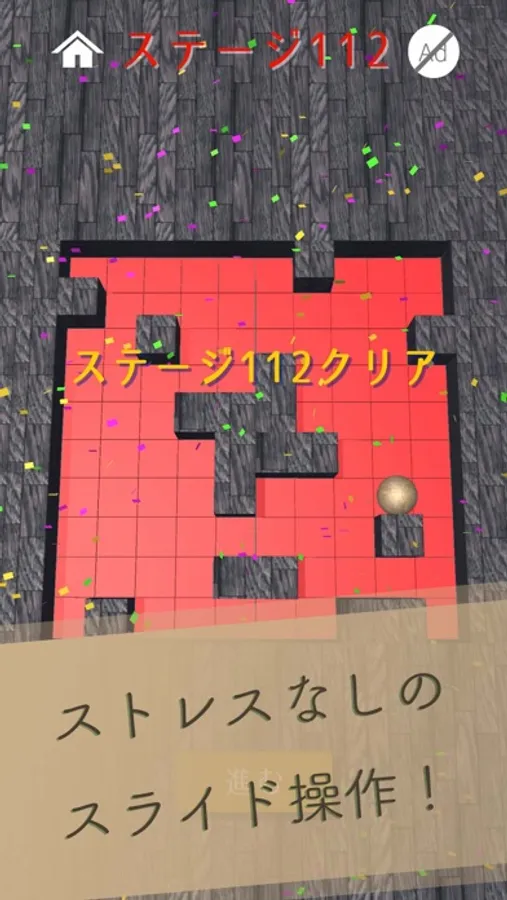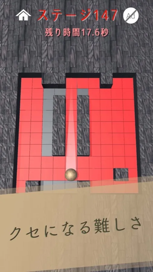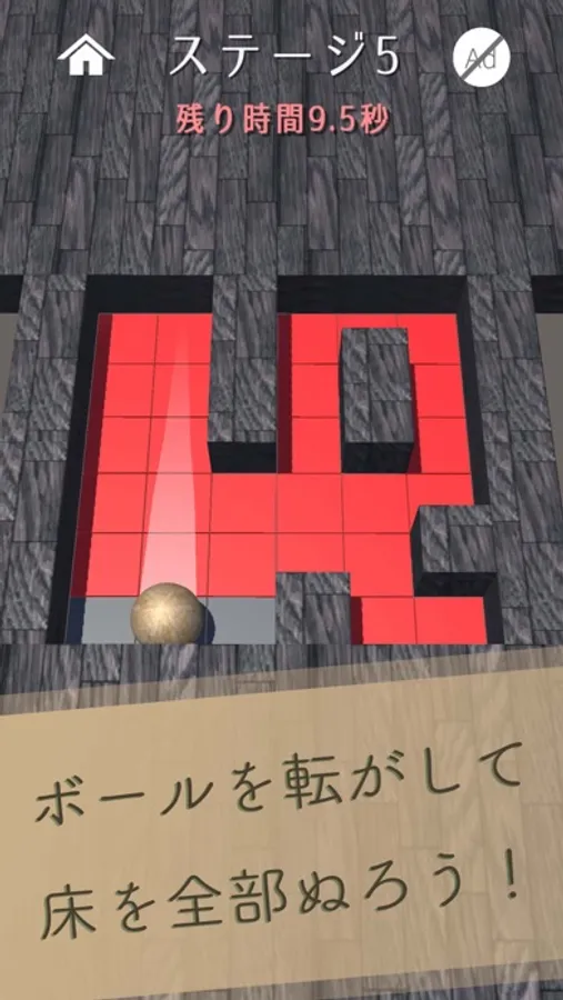 このゲームは、スワイプ操作でボールを動かして、床を全部塗り潰していくパズルゲームです!あなたが新しく通った道は、赤く塗り潰されていきます。