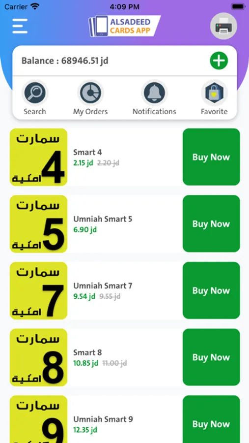 Al-Sadeed is the app to buy the cards with many types like: telecommunication, games, etc...