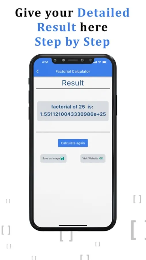 If you are not sure how to find factorial of large numbers! This calculator is a gift for you. You only need to write the value of a small or large number into the app, hit the calculate button to start the auto calculation of the factorial formula, and get an accurate result in no time by solving factorial questions.