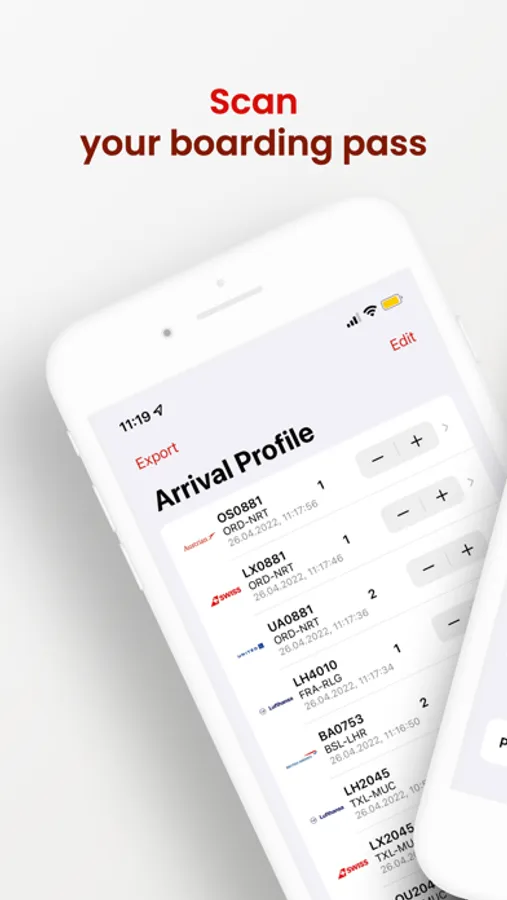 This app is aimed at airport ground handlers. It allows them to scan boarding passes of passengers at check-in, so they have an overview of when which passengers arrive at the airport. Based on this information, ground handlers can determine the arrival profile of passengers and optimize their planning parameters.