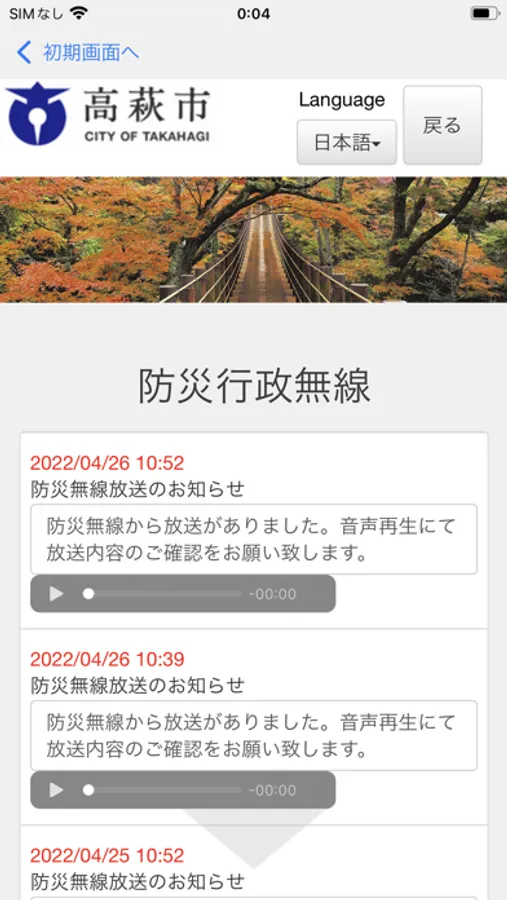 〇防災行政無線をスマホで聞くことができます。過去の放送も聞くことができます。