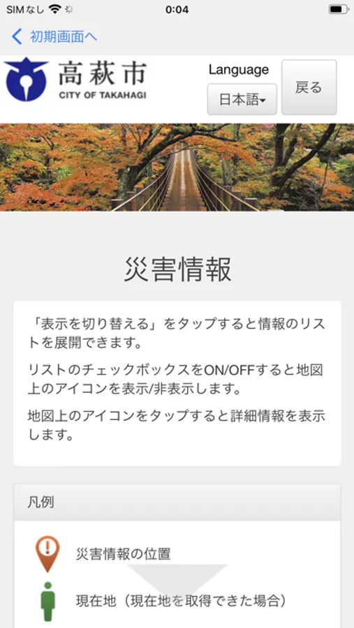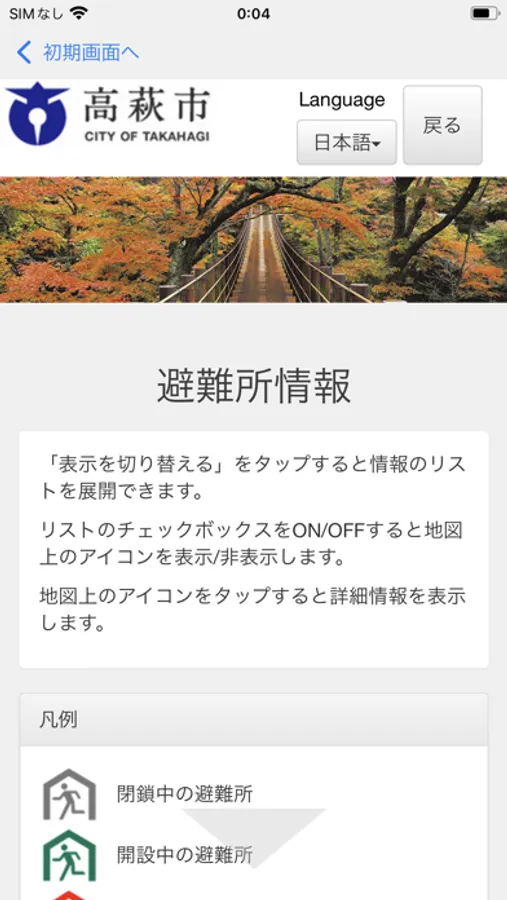 〇市内の避難所マップから避難所の開設状況を確認できます。
