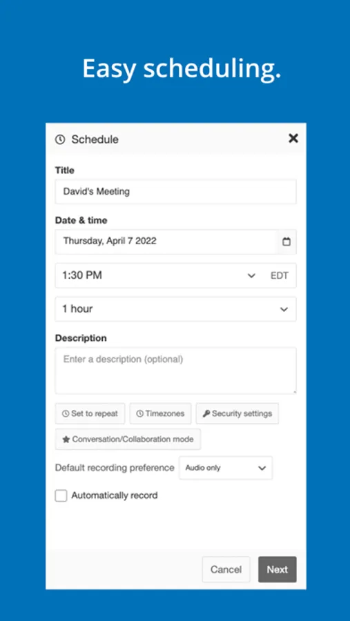 ● Vous organisez des réunions régulières ? Créez des appels récurrents en quelques clics