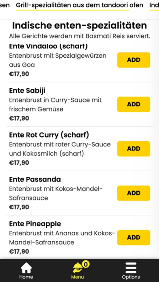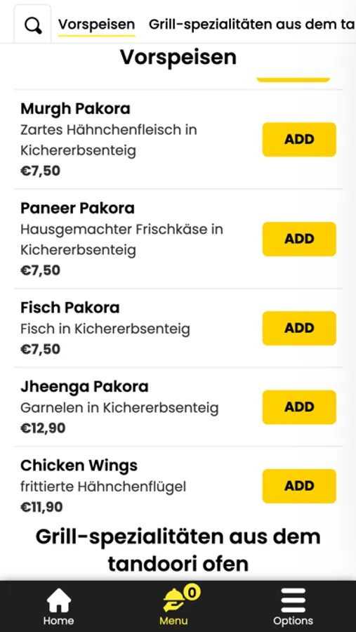 - Durchsuchen Sie die Speisekarte des Restaurants und sehen Sie sich alle anpassbaren Optionen im Voraus an