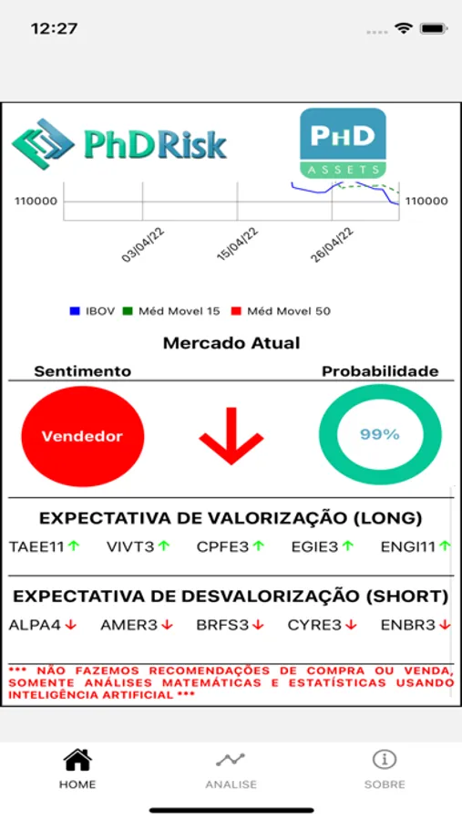 O sistema realiza cálculos matemáticos e estatísticos de valores históricos, projetando valores possíveis de preço alvo.