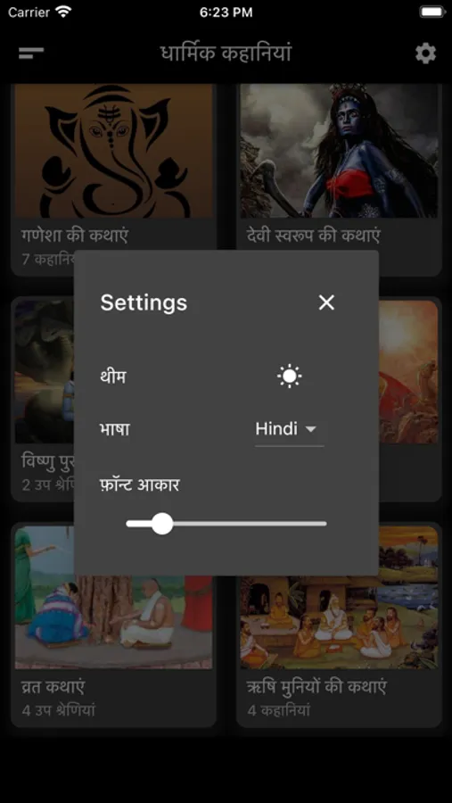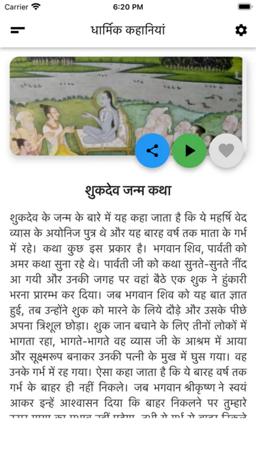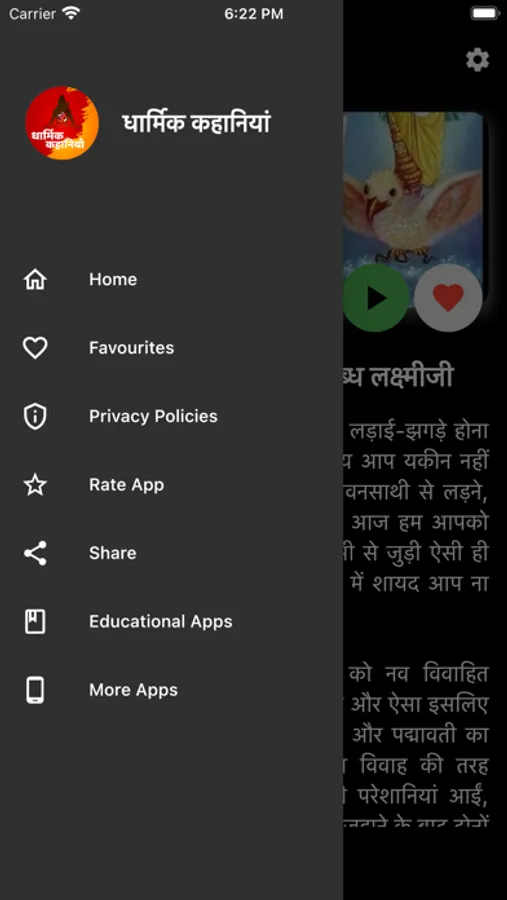 The application has a simple and efficient interface for easy viewing of various Hindi Dharmik Stories. When you get to the screen, you can swipe left or right to view various stories by category.