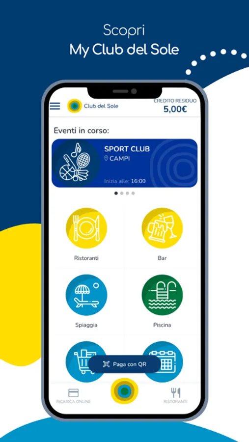 • Use it to make payments at the village in a fast and secure way thanks to the practical dedicated QR code and recharge the MySmartCash service with your credit card and without wasting precious time (only in Family Camping Villages equipped with MySmartCash money service).