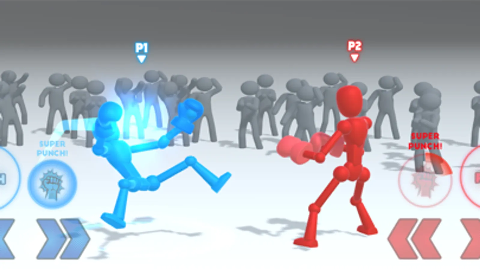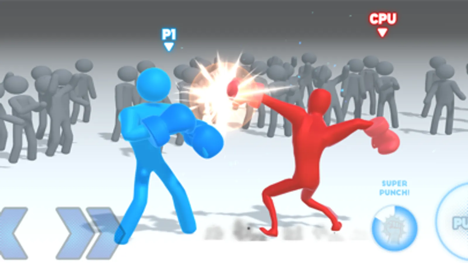 When you enter the ring, you can see the excitement of the spectators who support you. In order not to waste their support, focus and feel all your strength in your fists. Start 3-2-1! Walk on top of your opponent and start hitting your opponent with your fists. Wait for the right time to knock down your opponent with the strongest punch. When the “Super Punch” button is activated for the powerful punch, approach your opponent and hit the punch in your opponent's face. Remember, your opponent has the same advantageous button. Be on the alert for the super punch that will come from him and try to escape in time.