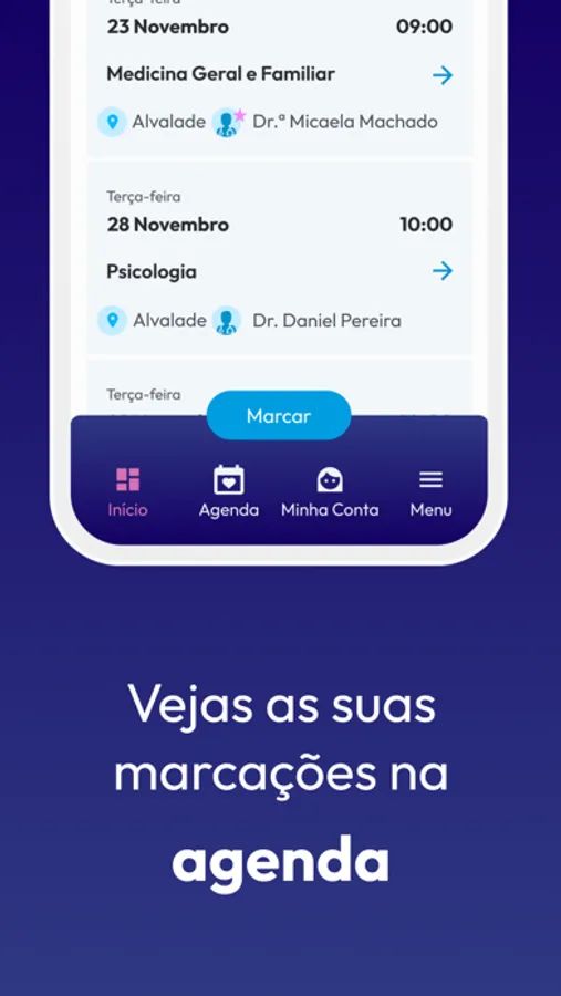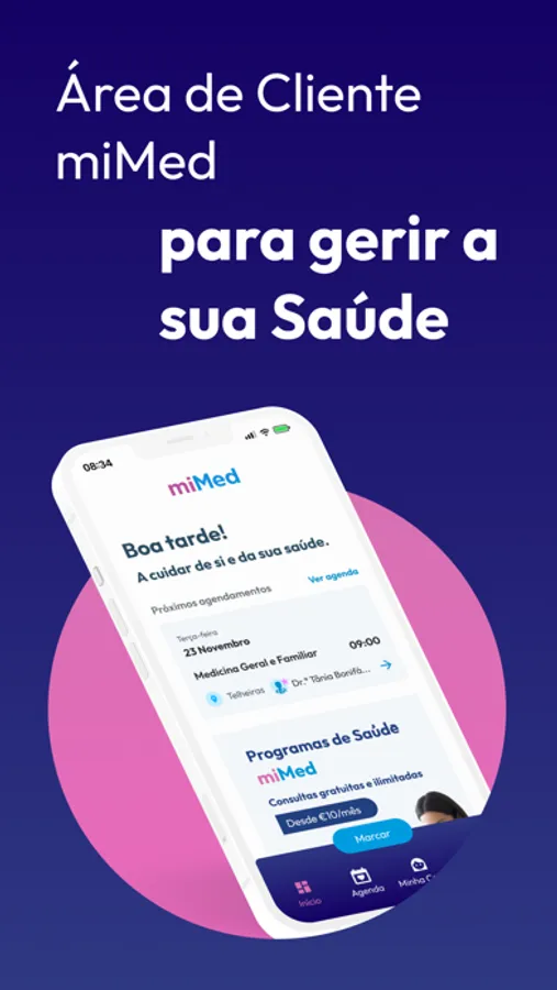 promoção da sua Saúde. Com a App miMed tem acesso à sua Área de