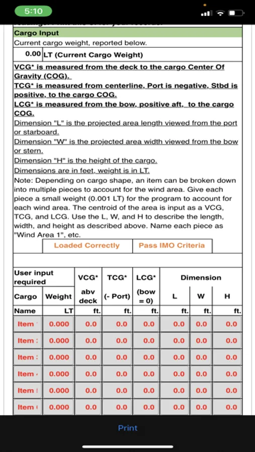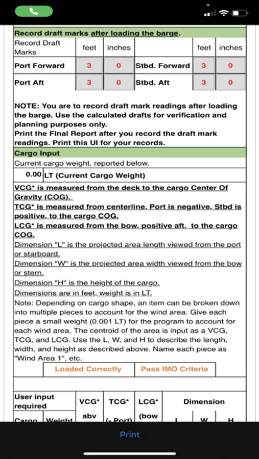 The apps simple interface allows the user to plan in advance or change a barge loadout on site with your phone or tablet. The user can add cargo and ballast to the barge and get instant results and an updated report. Report can be printed or saved as a PDF for signature and transmission.