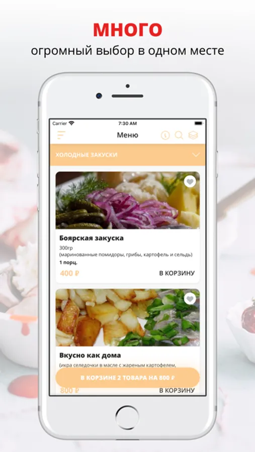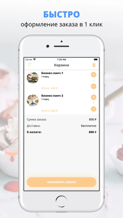 удобная корзина и быстрое оформление заказа,